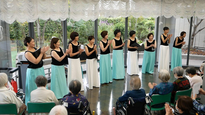 入居者の皆さまと昭和の懐かしい歌を一緒に歌い、熱唱してくださいました。